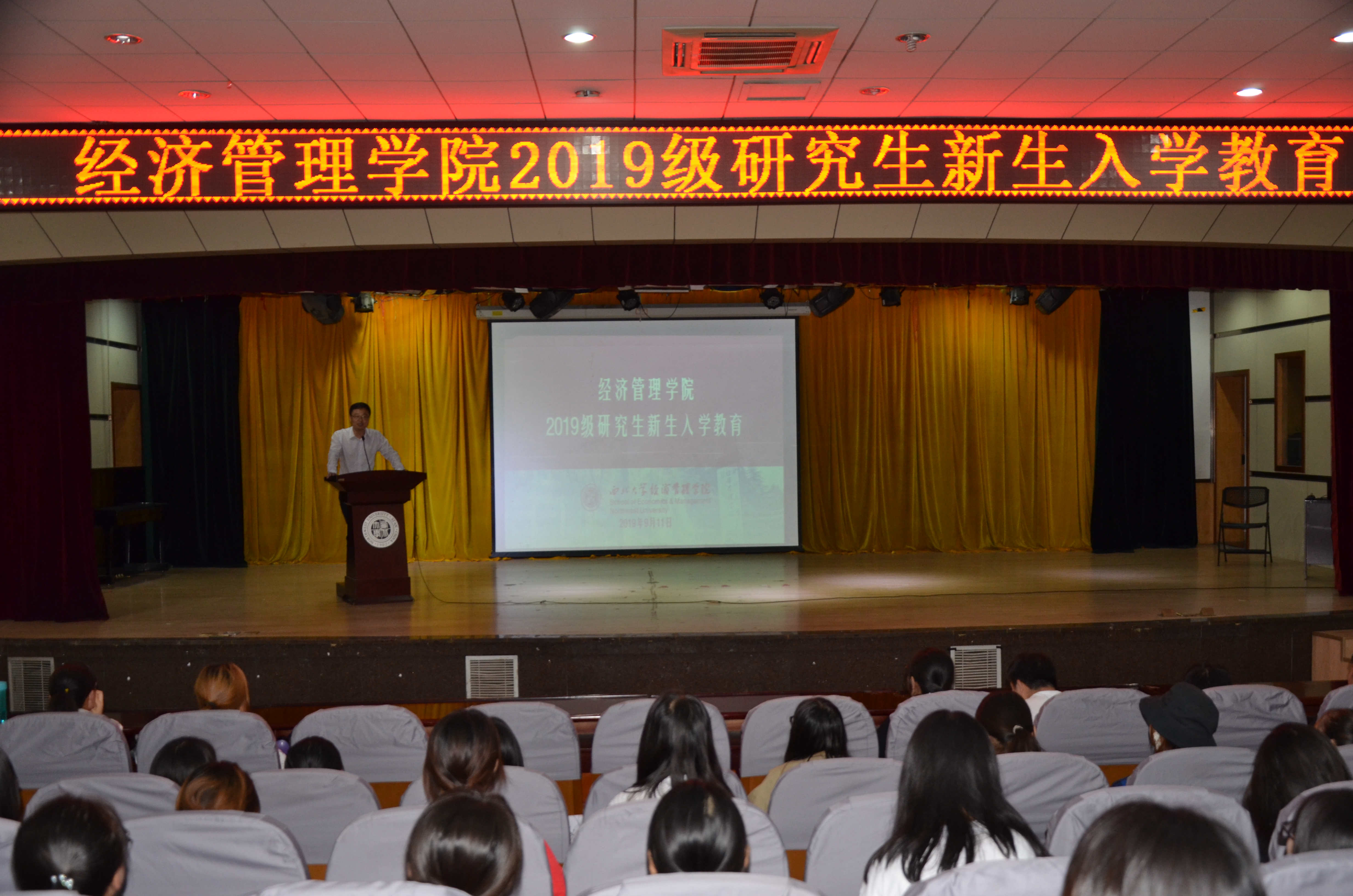2019年9月11日下午,776net必赢官网2019级研究生新生入学教育在长安校区多功能报告厅举行。776net必赢官网副院长马莉莉教授、776net必赢官网党委副书记赵金哲老师,2019年新任研究生导师及2019级全体研究生参加活动。
