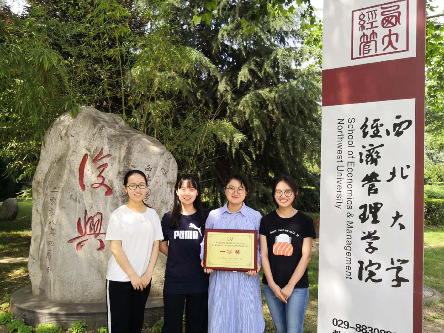 2018年5月26日至27日,由教育部高等学校统计学类专业教学指导委员会和中国商业统计学会联合主办“正大杯”第八届全国大学生市场调查与分析大赛总决赛暨第七届海峡两岸大学生市场调查与分析大赛大陆地区选拔赛,在山东财经大学举行。我院数理经济与统计学系王莉和张苗两位老师指导,2015级经济统计学专业的杨光、来倩、黄静和任翘翘四位学生组建的“火锅凉茶”团队的作品《养生“知”道——西安市大学生养生现状调查及分析》获得全国总决赛一等奖的成绩。