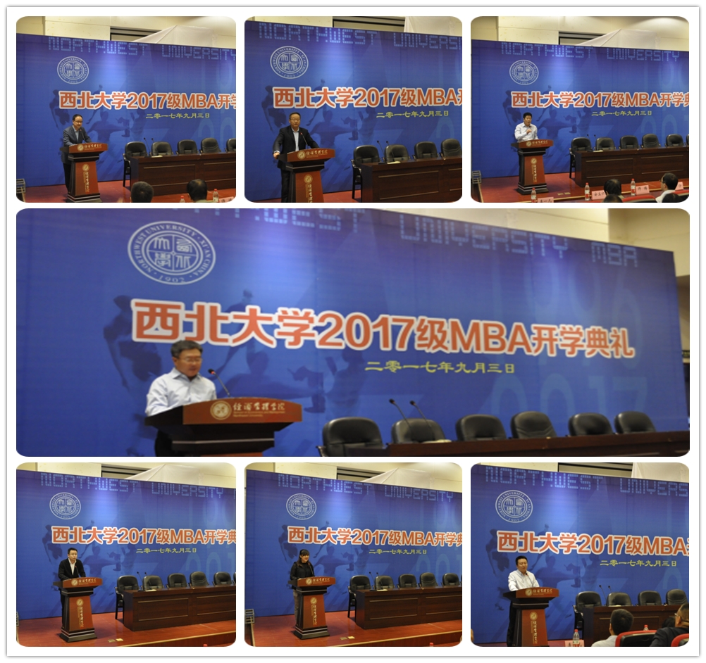 校长郭立宏教授在典礼上发表了热情洋溢的讲话。他说西北大学是一所百年综合性大学,776net必赢官网拥有学校的传统优势学科,始终是西北大学学科框架中最重要的学科之一。MBA新生选择了西北大学,就是选择了高的起点,选择了宽的平台,也必将收获新的梦想。他希望MBA学生能培养创新思维,培养人文情怀,增强创新能力,领悟西大校训,在大学校园里充分享受属于自己的清静一隅,用无限的热情和创新区谱写新的壮美篇章。校研究生工作部部长李军在讲话中介绍了西北大学研究生学历、学位教育情况,从研究生主管部门的角度希望MBA新生能珍惜和抓住有限的学习和交流机会,不断拓展人生格局,恪守“公诚勤朴”校训,发扬“艰苦创业、自强不息”的西大精神,植根西大土壤,积累体验、坚守信念、扎好根基、向上生长、积极阳光,在新的人生阶段取得更大的进步,为未来的人生之路积累一份最为宝贵的财富,真正成长成为一棵对国家社会有用的经世济民的西大MBA之树。