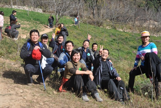 中午11:30分各队队员统一乘车出发,12:30分顺利抵达西安南郊子午峪小五台山下。在小五台山下竖旗扬威仪式隆重举行。仪式由裁判长齐捧虎教授主持,776net必赢官网院长白永秀教授致辞。最后由裁判组宣布比赛规则及注意事项。在裁判长的一声号令下各队队员整装出发向小五台山进军。初冬的小五台幽静而又美丽,各队队员登山途中互相鼓励,互相帮助,崎岖的山路,陡峭的山崖不时传出大家欢乐的歌声和爽朗的笑声。经过三个小时的坚持不懈,55名队员成功完成了“小五台”穿越,当最后一名队员安全抵达终点时,所有队员都为她送上了热烈的掌声。