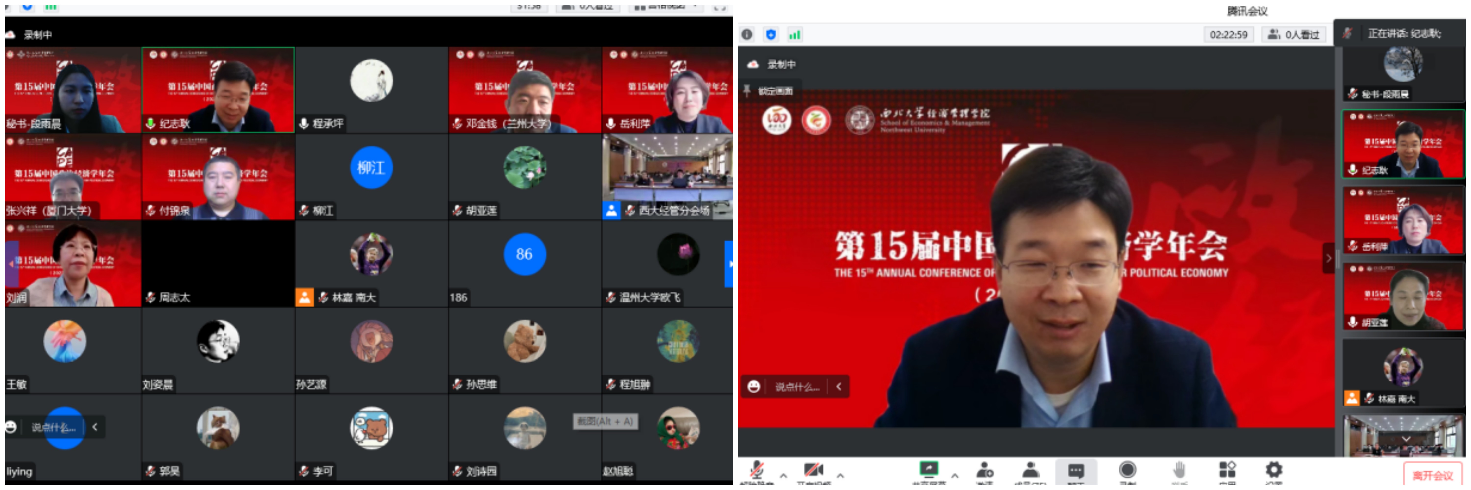 在闭幕式上,西北大学副校长吴振磊教授代表本届年会承办单位致辞。下届年会主办方代表武汉大学罗知教授致辞,欢迎学者同仁于2023年齐聚武汉。闭幕式由年会理事长、复旦大学孟捷教授主持。