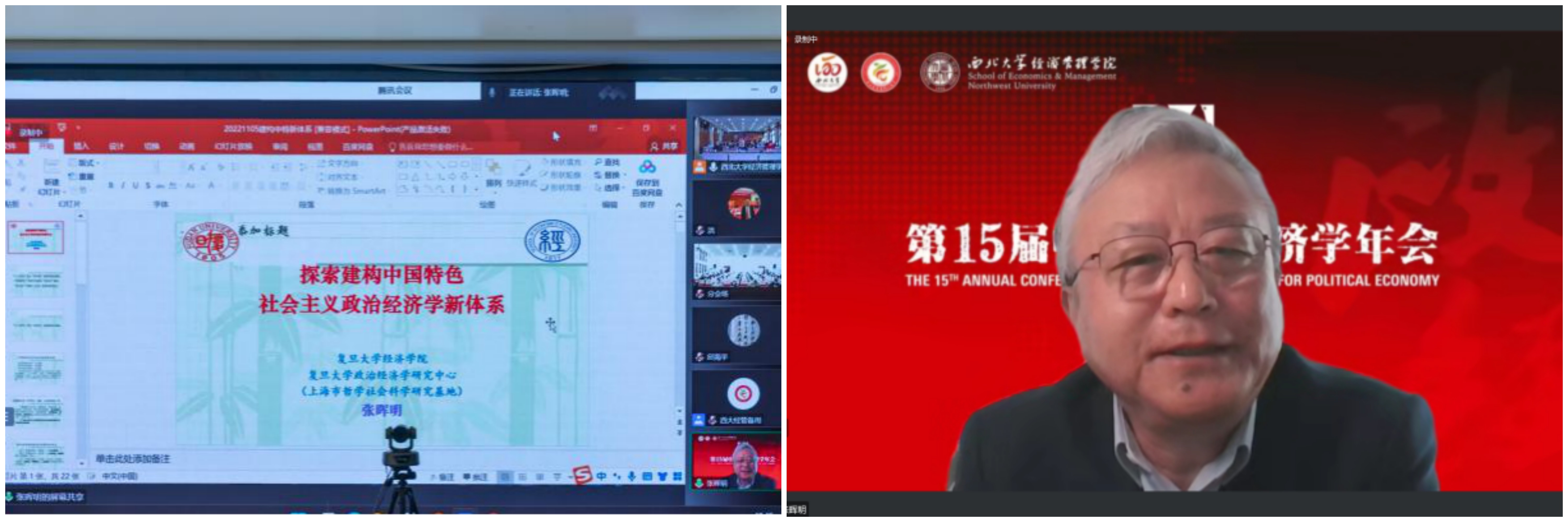 2022年11月5—6日,由中国政治经济学各理事单位共同主办、776net必赢官网承办的第15届中国政治经济学年会以“线上+线下”相结合的方式成功举行。本次会议共进行2场主旨报告、14场主题报告,7个分论坛60余篇论文交流,来自北京大学、清华大学、中国人民大学、中国社会科学院、复旦大学、南开大学、厦门大学、武汉大学、南京大学、四川大学、辽宁大学、西南财经大学、广东外语外贸大学、天津师范大学和西北大学等40余所国内重点高校和科研院所的150余位正式会议嘉宾围绕马克思主义政治经济学、中国特色社会主义政治经济学等重大理论和实践议题,发表观点、开展交流;线下200余名776net必赢官网师生参会,超2000人在线参与论坛,主论坛网络直播超5000人次观看,累计8000余人次参会。