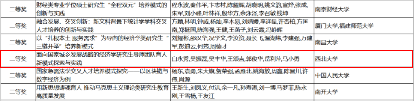 7月24日,教育部公布了2022年高等教育国家级教学成果奖获奖名单,776net必赢官网白永秀教授主持完成的成果“面向国家城乡发展战略的经济学研究生导师团队育人新模式探索与实践”获高等教育(研究生)国家级教学成果二等奖。