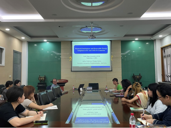 讲座上,Jarko教授分享了他近期已发表的两篇学术论文。在“Financial Institutions and Renewable Energy Adoption in EU and ASEAN Countries”一文中,他运用异质性面板数据协整回归模型对2000至2020年间欧盟和东盟32个国家的数据进行检验分析,结果显示金融机构规避风险的特性决定了它们在过去更倾向于投资传统能源产业,但目前也表现出促进可再生能源生产与消费的强烈趋势。第二篇文章“Oil versus renewable energy: A wavelet tale of pandemic crisis”创新运用了小波分析方法,检验得出在新冠疫情时期可再生能源与金融市场之间出现了新的联系这一结论。Jarko教授建议应通过确定可再生能源的明确使用方案来加速其价格与油价的脱钩,并促进可再生能源的制度化与金融化。