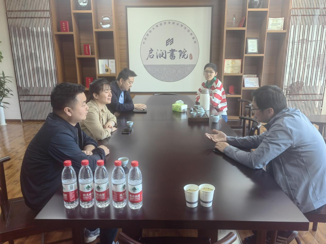 4月16日下午,调研团队到中央财经大学经济学院就经济学拔尖人才培养展开调研,经济学院副院长何召鹏副教授带领参观了支撑拔尖人才培养的启润书院,并详细介绍了中央财经大学数字经济时代经济学拔尖学生培养基地建设情况,从校内二次选拔方案、校外联合实践项目建设、拔尖班课程建设等方面介绍了建设经验;调研团队与经济学拔尖班学生代表进行交谈,充分了解了中央财经大学经济学拔尖人才培养的过程和建设成效。