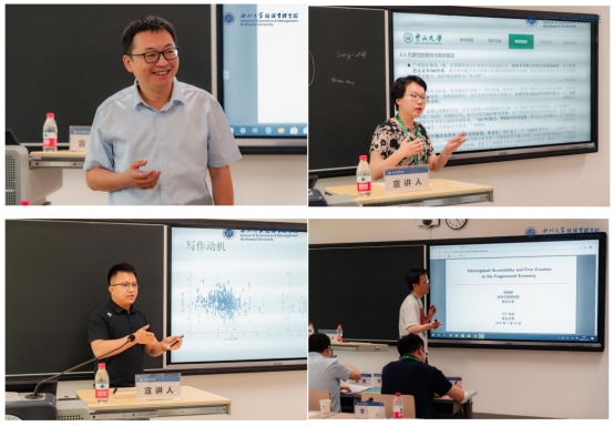 博士生论坛(七)由西北大学吴丰华教授主持,复旦大学刘志阔教授点评。西北大学的曾维康作了题为《城市供应网络视角下数字化政策的虚拟集聚效应研究》的报告;中山大学的周荃作了题为《数字政府影响收入差距的U型模式:来自全球的证据》的报告;西南财经大学的陈春作了题为《Momentum, Short-Term Reversal, and Retail Investor Participation》的报告。
