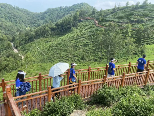 今天的蒋家坪村把总书记的殷殷嘱托化为不断发展前行的动力,以本地特色茶产业为依托,发挥农村环境优美的优势,充分与旅游业、休闲娱乐业等产业融合发展,让茶区变景区,茶园变公园,茶山变金山,带动村民实现增收致富。