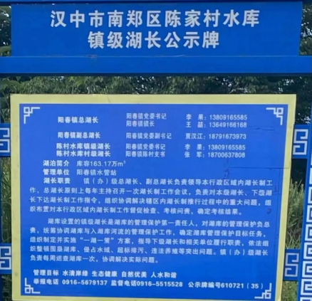 陈家村水库镇级湖长公示牌