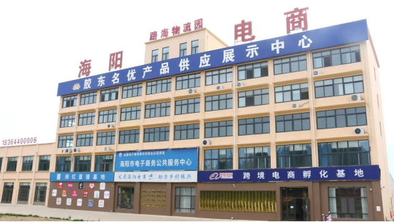 海阳市电子商务公共服务中心共计约2000平方米,分为两层,第一层主要以展示大厅为主,展示农产品、毛衫等名优产品,共入驻22家企业700多种产品,第二层包括众创空间、网络直播区、办公区、培训教室等。