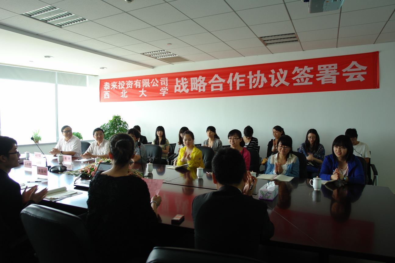 日前,我院与泰来投资有限公司战略合作协议签署仪式在泰来投资有限公司隆重举行,院副院长赵守国、党委副书记樊涛及研究生代表、泰来投资有限公司董事长张耒、副总裁程永康及相关部门负责人参加了签约仪式。樊涛副书记与程永康副总监分别代表双方在战略合作协议上签字,赵守国副院长和张耒董事长共同为“研究生实习基地”揭牌。