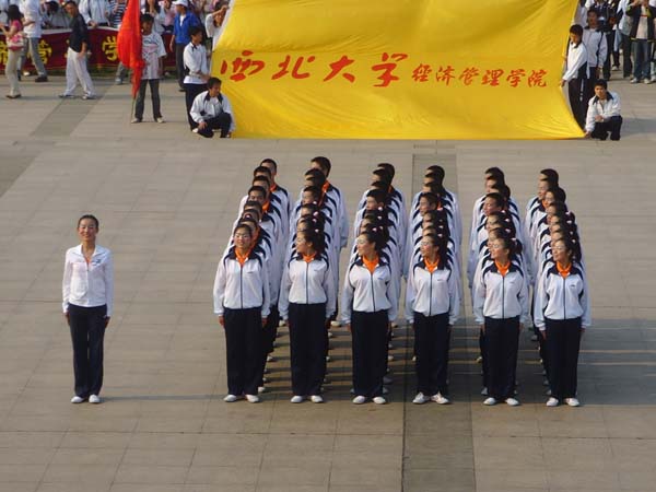 4月16日下午,西北大学第十三届“青春杯”新生广播体操大赛在南校区北广场隆重举行,经过19个代表队的激烈角逐,我院新生代表队脱颖而出,勇夺冠军。